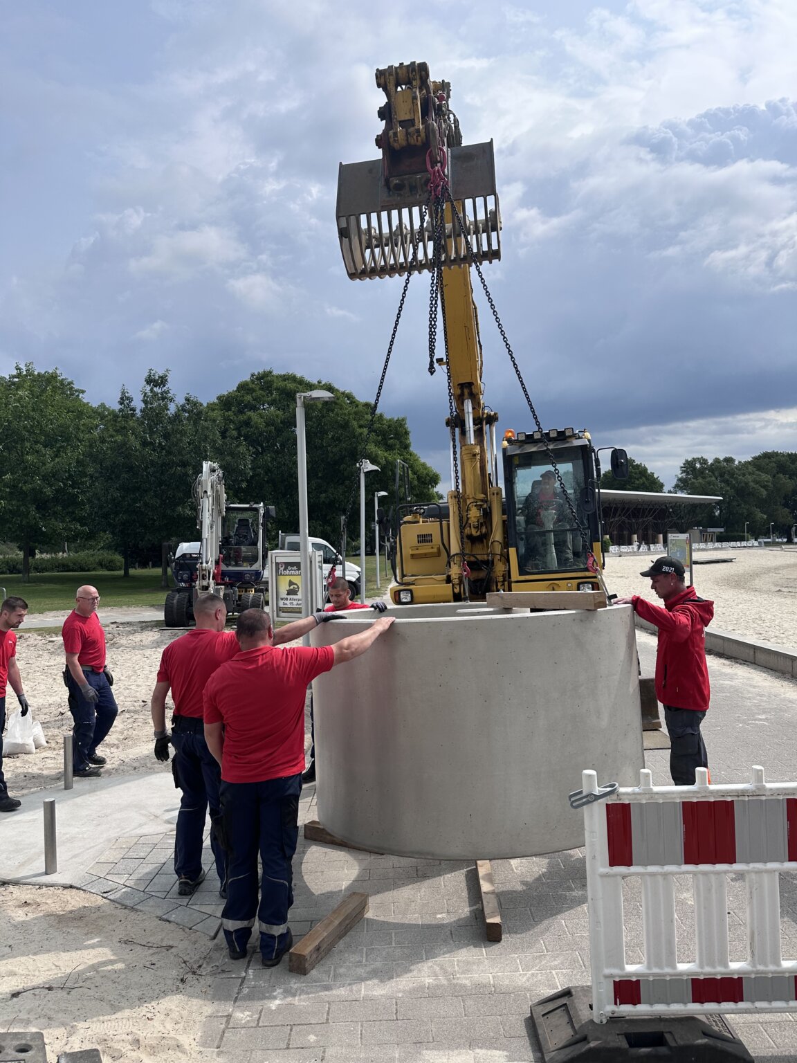 Im Rahmen eines Gemeinschaftsprojekts mit der Bürgerstiftung Wolfsburg, der WMG, sowie uns – der Thieme GmbH & Co. KG und der entricon GmbH – haben wir Umkleidekabinen für die Besucher*innen des Allersees errichtet.